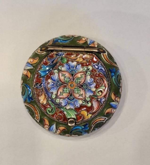 Русская серебряная таблетница с цветной эмалью, Федор Рюкерт.
