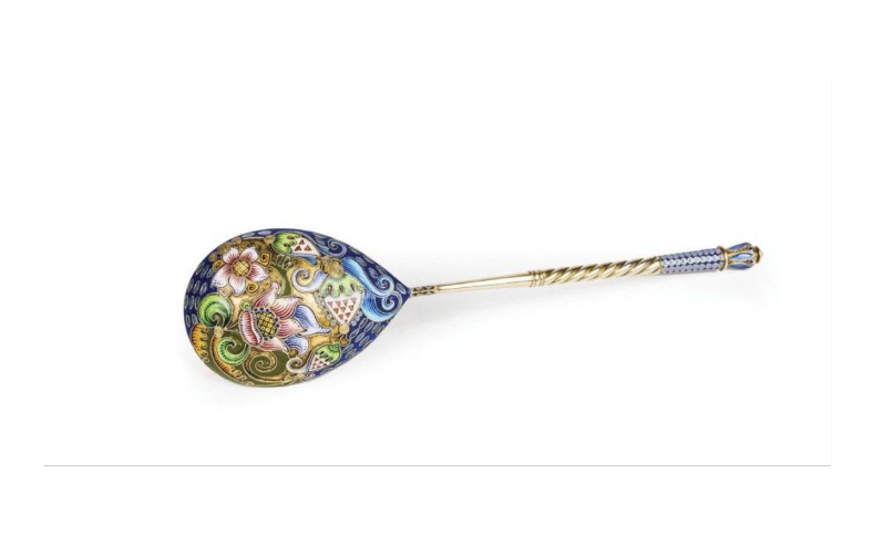 Feodor Ruckert. Cuillère d’apparat en vermeil et émaux cloisonnés. Moscou, 1908 - 1917