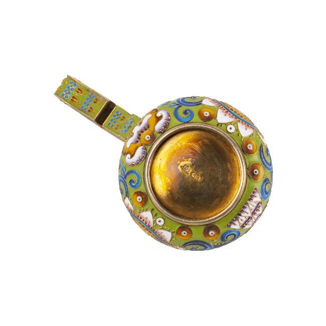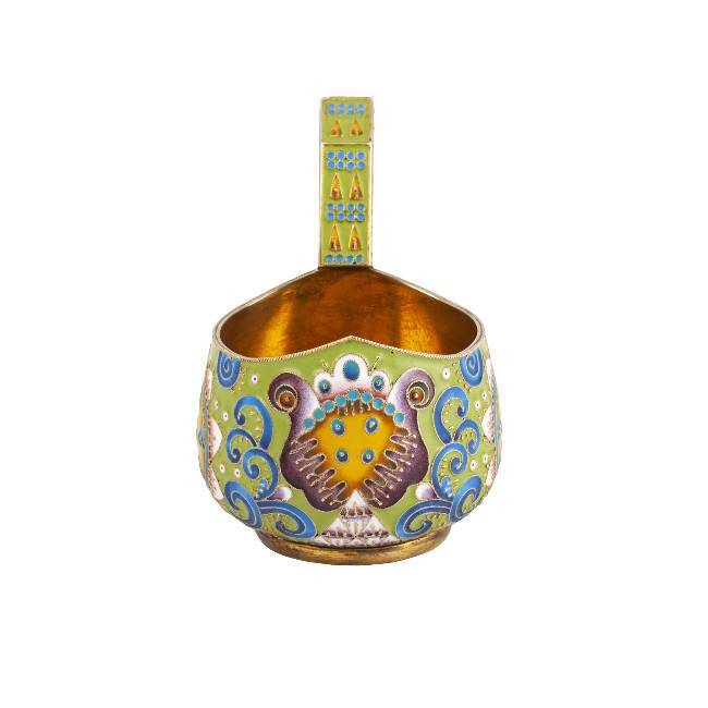 A Faberge silver-gilt, cloisonne enamel kovsh