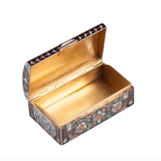 Серебро, скань, расписная перегородчатая эмаль, позолота. Мастер Ф. Рюкерт? (клеймо отсутствует), фирма К.Фаберже.