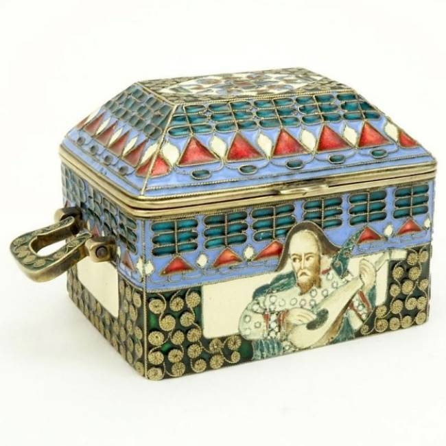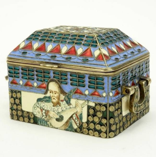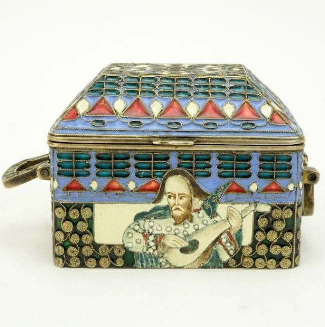 20th Century Russian Cloisonne Enamel Hinged Box. Signed Faberge, Double eagle Imperial Warrant Mark, FR and 88 Kokoshnik.