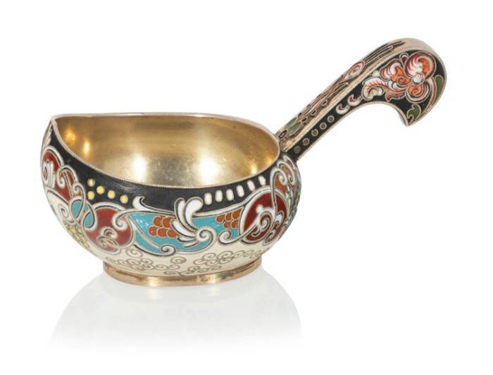 A Fabergé Gilt Silver and Cloisonné Enameled Small Kovsh