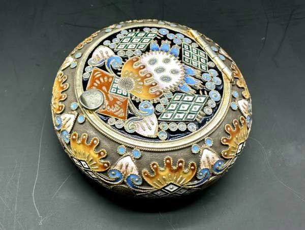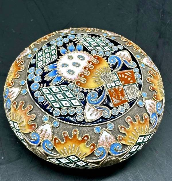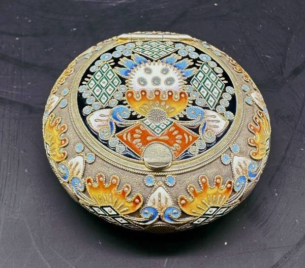 Art Nouveau decoration Russian antique silver gilt cloisonné enamel snuff box.