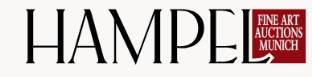 We hold at least four large art auctions with distinguished pre-sale exhibitions for the auctions at the headquarters of Villa Hampel in Munich each year. The works of art are presented in high-quality auction catalogues, in varied digital formats and in our live auctions. Would you like to buy art objects or paintings? You can take part in our auctions by means of a written bid, by telephone, online or via the lottissimo and invaluable platforms as well as on site in the auction room in Munich. You also have the possibility to follow every auction via livestream from all around the world.