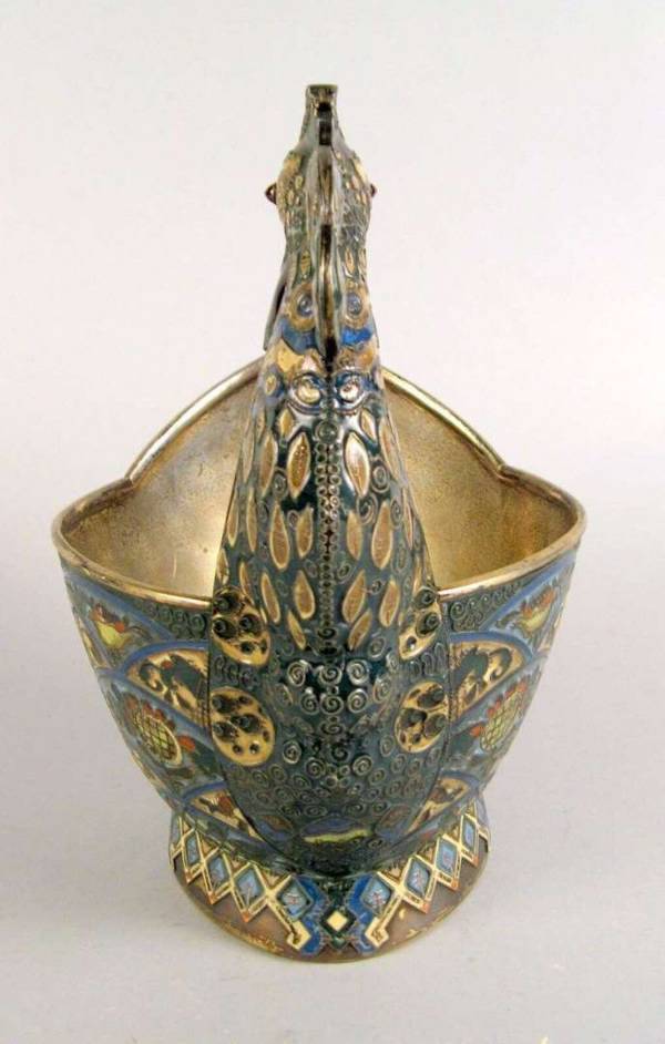 Large Russian shaded enamel and silver-gilt kovsh Feodor Rückert for Fabergé, early 20th century