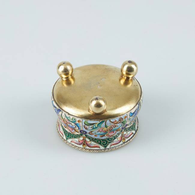 3519322. SALT CELLAR, gilt silver, cloisonné enamel. Feodor Rückert, Russia, 1896-1908.