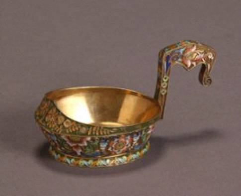 Russian Gilt Silver and Shaded Enamel Kovsh