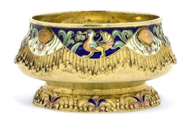 A RUSSIAN SILVER-GILT AND SHADED CLOISONNE ENAMEL SUGAR BOWL