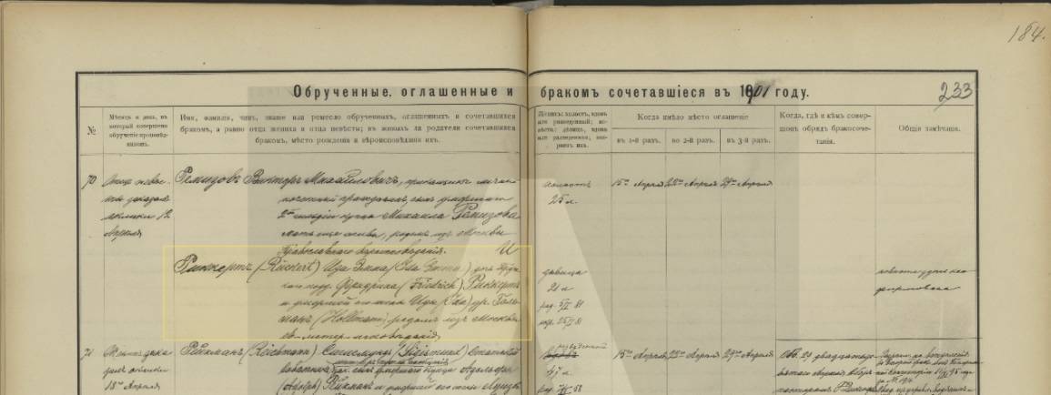 Дело: № 21, МЕТРИЧЕСКАЯ КНИГА ОБРУЧЕННЫХ, ОГЛАШЕННЫХ И БРАКОСОЧЕТАВШИХСЯ. (ПАСТОРЫ ДИКГОФ Г., КОХ К.) 1 НОЯБРЯ 1897-26 ДЕКАБРЯ 1902