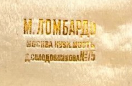 1895–1917: Магазин ювелирных изделий ЛОМБАРДО Маттей Михайловича находился по адресу: Кузнецкий мост, д. 75, пассаж Солодовникова.