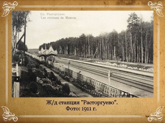 При вышеописанном использовании земли многие десятилетия поселок Расторгуево был красивейшим местом проживания и отдыха для москвичей и местных жителей. До сего дня сохранились многие трехсотлетние дубы и вековые сосны.