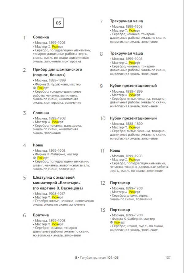 Каталог 2014 г. работ Рюкерта в Голубой гостинной