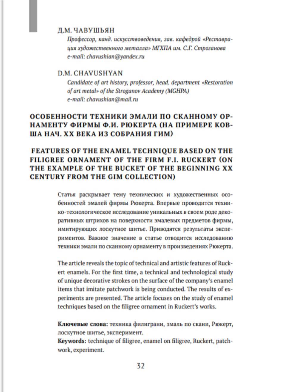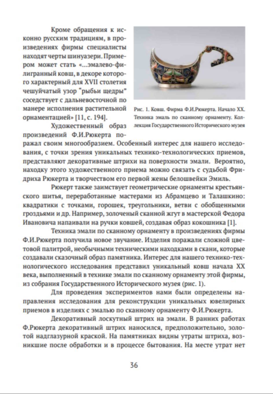 Особенности техники эмали по сканному орнаменту фирмы Ф.И. Рюкерта (на примере ковша нач. XX века из собрания ГИМ)